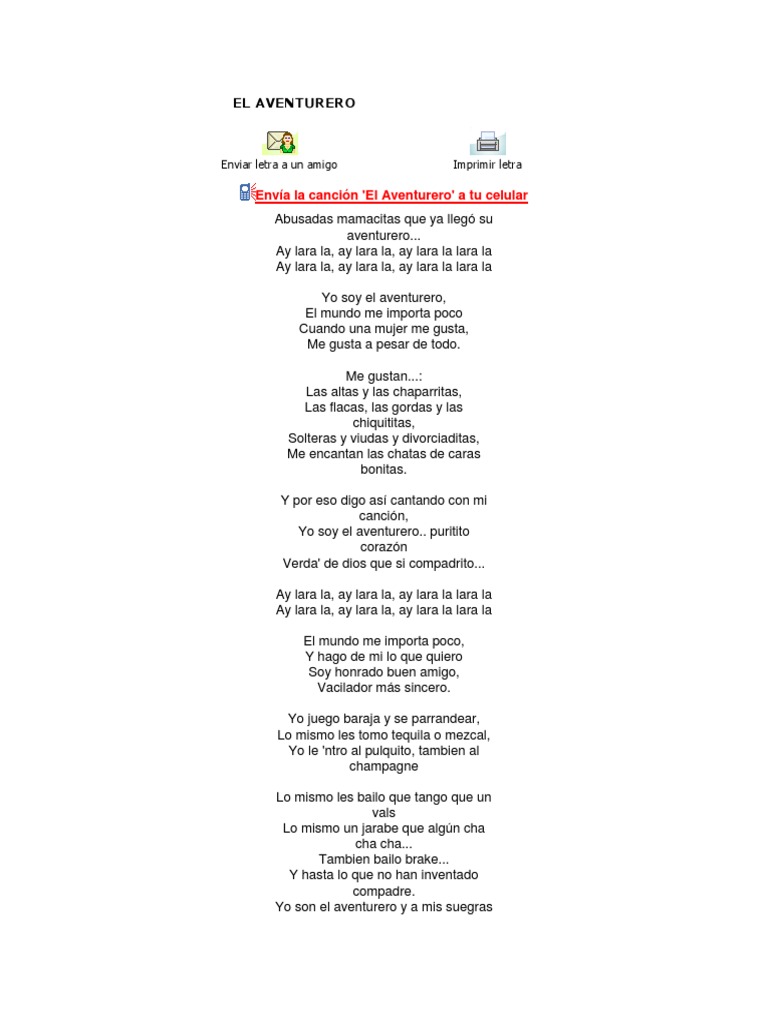 El Aventurero Docx Me gustan las suegras que no son celosas, me encantan las chatas poco resbalosas que tengan ma.